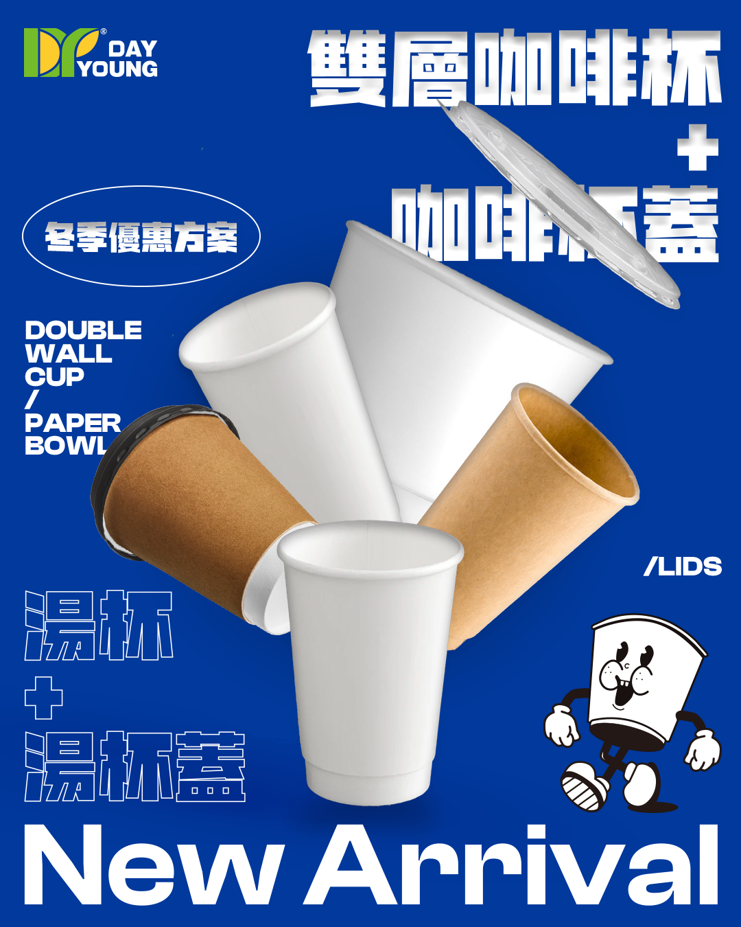 Double-Wall Coffee Cup + Coffee Cup Lid and Soup Cup + Soup Cup Lid —
