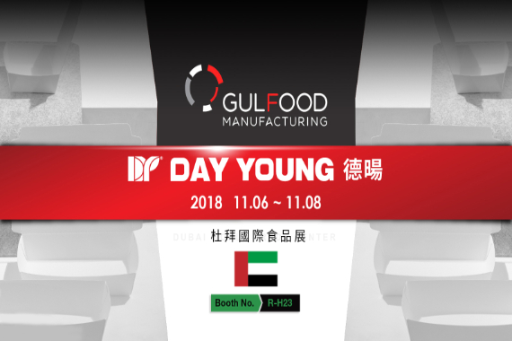 DAY YOUNG將於2018年11月再次前往杜拜的世界貿易中心DUBAI WORLD TRADE CENTRE,向世界各國食品貿易客戶提供多樣化的免洗餐具包括了包括紙杯、咖啡杯、熱飲杯、PET杯、PET蓋、PP杯、PP湯杯蓋、水果盒、番茄盒、Deli杯、冰淇淋杯、優格杯、炸雞桶、便當盒及各式紙餐盒,滿足客戶對各式食品包裝的需求,讓世界看見台灣在製造食品容器以及設計上的水準,讓台灣走出世界,讓世界走進台灣。